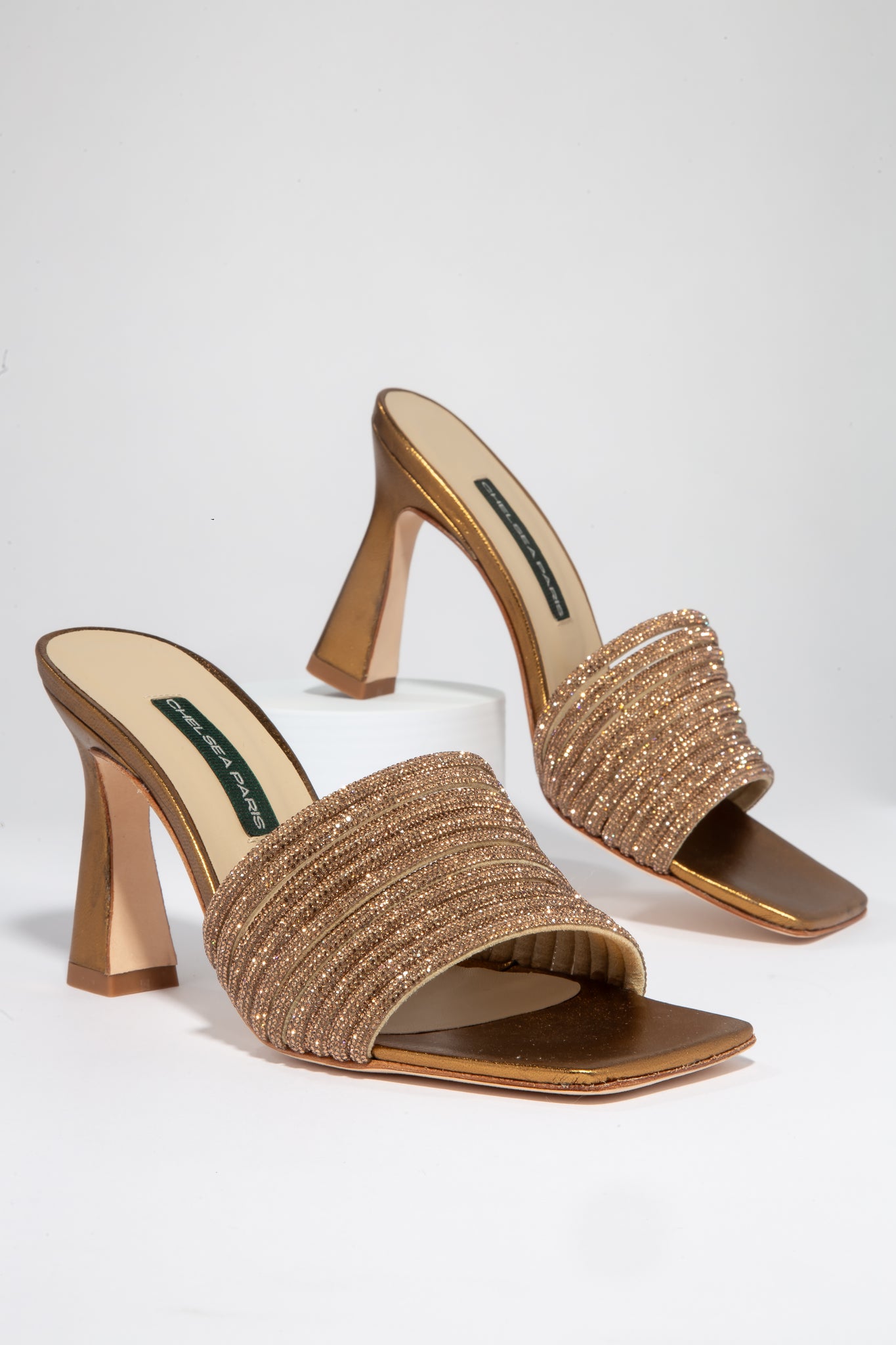 • Bronze Nappa leather and Crystal straps