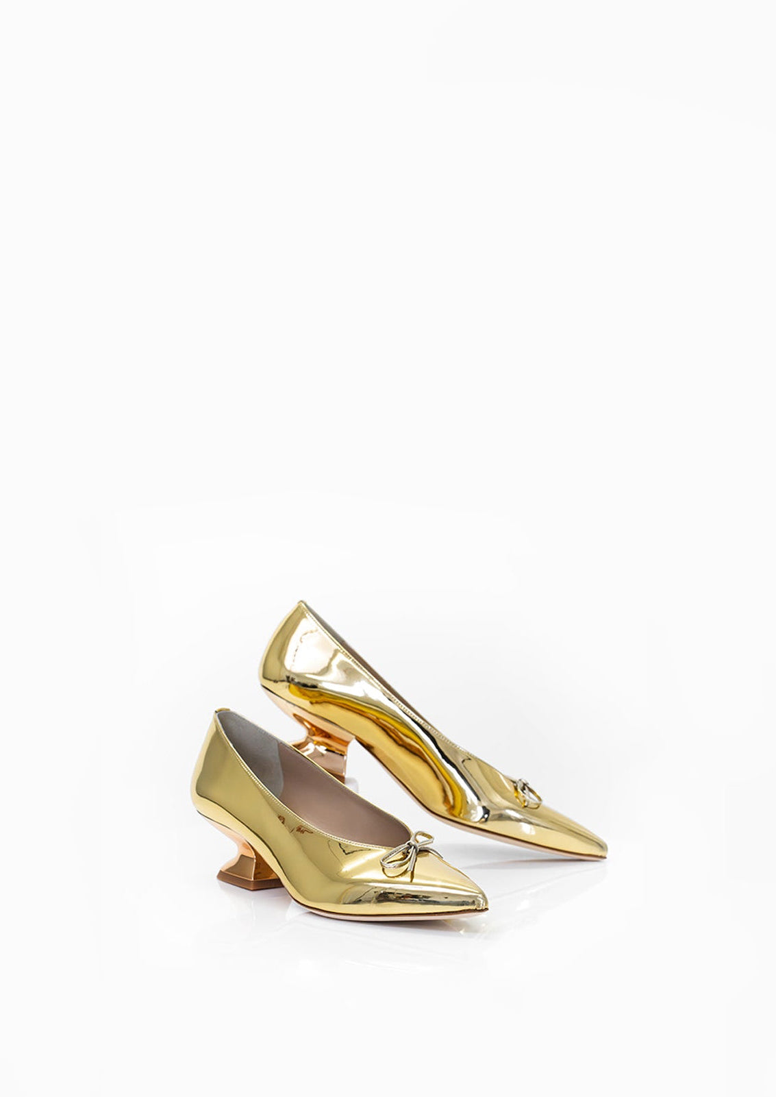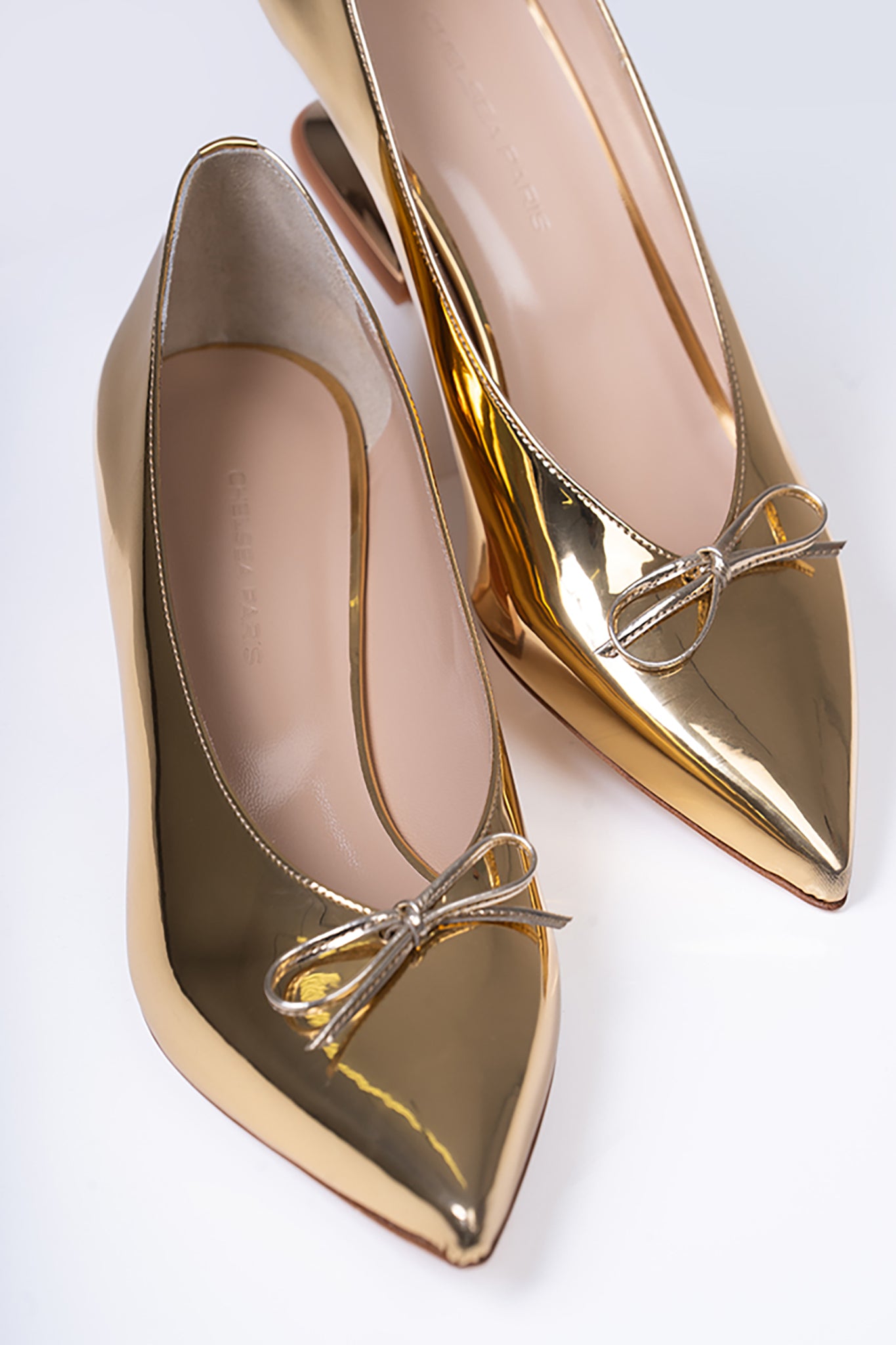 Radiant and bold, INI in Gold Mirror captures the essence of statement luxury. This reflective heel turns heads with its sculptural silhouette and high-shine finish, embodying Chelsea Paris’ modern approach to glamour.