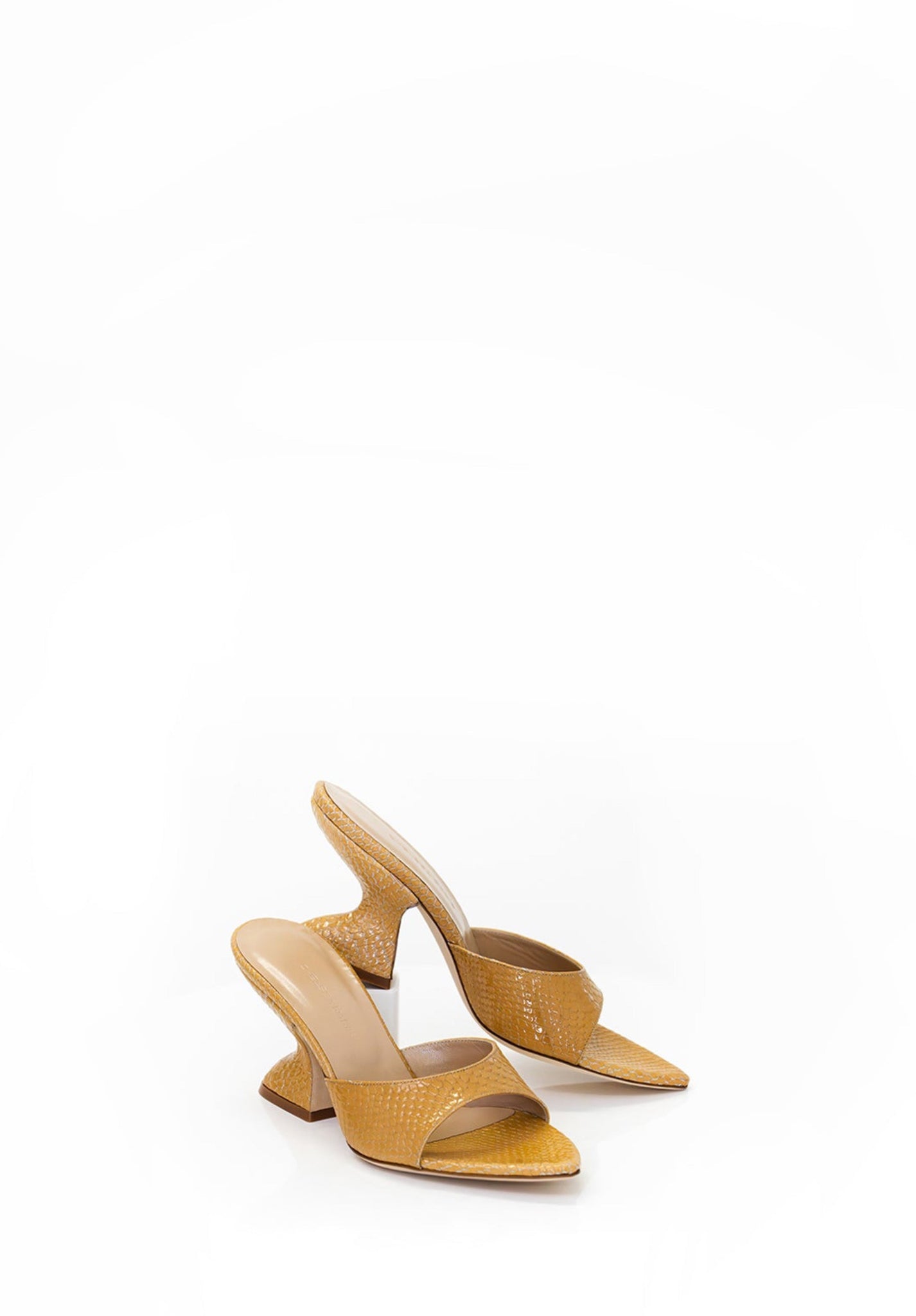 Kira in Caramel brings a softer, refined tone to the sculptural heel silhouette. Its warm neutral hue complements the metallic and snake-embossed variations in the collection — delivering understated elegance with an artisanal touch.