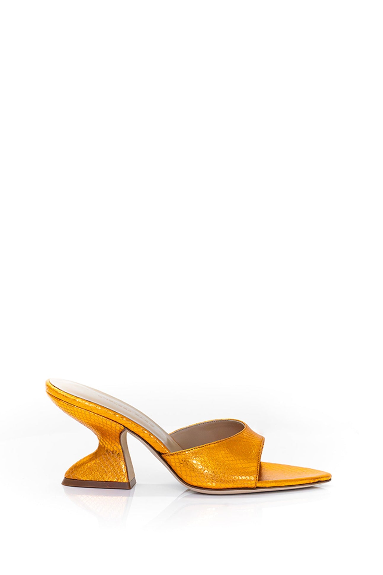 Radiating warmth and allure, Kira in Sunset Metallic Snake Print captures the glow of golden-hour light. Its iridescent finish and embossed texture bring dimensional depth, offering a bold yet sophisticated statement for every occasion.